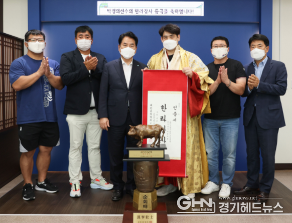 경기헤드뉴스 임채헌 기자 | 백군기 용인시장은 12일 한라장사에 오른 용인시청씨름단 소속 박정의 선수와 씨름단 및 용인시씨름협회 관계자들을 시청으로 초청해 축하하고 격려하는 시간을 가졌다.