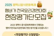 경기헤드뉴스 임수연 기자 | 평택시는 오는 25일 농업생태원에서 ‘2025 평택시 음식문화축제’를 통해 ▲전국 요리경연대회 ▲평택 지역 맛집 및 세계음식 시식·체험관 ▲노 오븐 베이킹 체험관 ▲탄소중립 실천·홍보관 등 다채로운 부스가 운영돼 시민들에게 풍성한 경험을 선사할 예정이다. 전국 요리경연대회는 ‘평택의 맛, 나만의 아이디어로 버거를 완성하다’를 주제로 총 18팀(일반부 10, 가족부 8)이 본선에 진출해 열띤 경연을 펼친다. 지난해와 달리 참가 부문이 일반부와 가족부로 확대됐으며, 시상 규모도 10팀 740만 원으로 늘어나 큰 기대를 모으고 있다. 경연대회의 생생한 현장을 함께할 시민 현장평가단도 사전 모집한다. 10월 24일(금) 오전 9시부터 오후 5시까지 일반부와 가족부 각 20명씩 무작위로 선착순 접수받으며, 편식 없는 고등학생 이상이라면 누구나 신청할 수 있고, 선정된 지원자는 실제 경연 현장에서 요리를 맛보고 평가하게 된다. 또한, 오전 10시에는 빵과당신 인재홍(대한민국 제과명장)이 진행하는 베이킹 체험이 마련돼 있으며, 참가 신청은 24일(금) 오전 10시부터 평택예총 공식 블로그 및