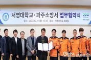경기헤드뉴스 경기헤드뉴스 기자 | 파주소방서(와 서영대학교는 지난 11일 파주소방서장 및 서영대학교 부총장이 참석한 가운데 파주시 화재예방·재해방지 등 제반 안전을 위하여 상호 업무협약을 체결했다고 밝혔다. 이번 업무협약은 상호간의 인적·물적 네트워크 구성을 통한 소방지식과 정보를 교환하여 각종 재난발생 시 신속한 대응능력을 향상하고 지역 내 우수한 소방인력을 양성하고자 마련됐으며, 특히 2024학년도부터는 파주캠퍼스에서도 응급구조과가 신설될 예정이다. 협약 주요 내용으로는 ▲파주시 화재예방 및 재해안전 등 제반 안전에 관한 사항 ▲인적교류 및 지식과 정보의 상호교환에 관한 사항 ▲기술자문 및 상호협력을 위한 프로그램 운영 ▲재학생의 소방서 문화 체험을 위한 현장실습 및 취업정보 제공 ▲기타 공동협력이 필요한 사항 등이다. 정찬영 파주소방서장은 “파주소방서는 여러 기관·단체와 상호 소방응원협정을 체결하여 유기적인 공조체제를 구축해왔으며, 또한 이번 서영대학교와의 업무협약 체결을 통하여 두 기관 간의 상호협력으로 안전하고 건강한 지역사회를 만들 수 있도록 최선을 다하겠다”라고 전했다.