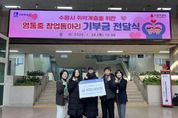 경기헤드뉴스 권준형 기자 | 수원 영통중학교 창업동아리 학생들이 창업 활동 수익금을 모아 수원시 취약계층 시민을 위해 기부했다. 1월 29일 수원시청 본관 1층 로비에서 열린 기부금 전달식에는 윤영숙 시민복지국장, 영통중학교 창업동아리 학생 등이 참석했다. 학생들은 직접 디자인·제작한 탁상용 달력 100개를 판매해 마련한 수익금 45만 원을 수원시에 전달했다. 수원시는 기부금을 취약계층 시민 지원을 위해 사용할 예정이다. 영통중학교 창업동아리 학생들은 “작은 나눔이지만 어려운 이웃들에게 도움이 되기를 바라는 마음으로 기부에 참여했다”며 “직접 만든 작품으로 나눔을 실천할 수 있어 기쁘다”고 소감을 밝혔다. 윤영숙 시민복지국장은 “학생들이 활동 수익금으로 이웃사랑을 실천한 모습이 대견하다”며 “따뜻한 나눔이 지역사회 전반으로 확산되기를 바란다”고 말했다.