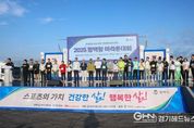경기헤드뉴스 성미연 기자 | 평택시의회는 19일, 평택항 엠에스로지스틱 일원(평택시 포승읍 신영리)에서 개최된‘2025 평택항 마라톤대회’에 참석해 전국에서 모인 마라토너들의 열정을 응원했다. 이날 행사에는 강정구 평택시의회의장을 비롯한 시의원이 참석하고 평택시 체육회장, 평택시육상연맹 관계자 등 내외빈과 참가자 약 7,300여명이 함께했다. 이번 평택항 마라톤대회는 스트레칭으로 몸을 푼 뒤 하프코스(21.0975km)·10km,·5km 3개 부문으로 나눠 출발했다. 하프코스는 평택당진항 자유무역지역을 지나 평택항 서부두 내항방면을 거쳐 퓨리나 평택공장까지, 10km구간은 서부두 해안도로까지, 5km구간은 평택항 서부두 내항방면까지 각각 반환점으로 삼는 코스다. 강정구 의장은 “마라토너가 달리는 이유는 끝이 아닌 여정 그 자체에 있기에 중요한 것은 완주가 아니라 그 과정 속에서 자신을 발견하는 일”이라며, “평택시의회도 건강한 공동체 속에서 도전의 기쁨을 누릴 수 있도록 생활체육 기반을 튼튼히 다지는 데 최선을 다하겠다”라고 전했다. 한편 올해로 25회를 맞는‘2025 평택항 마라톤