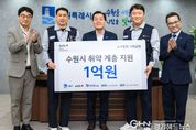 경기헤드뉴스 권준형 기자 | 기아(주) 노사가 “수원시 취약계층 지원에 사용해달라”며 1억 원을 한국사회복지협의회에 기탁했다. 기부금은 수원시사회복지협의회를 통해 수원시 복지사각지대와 취약계층 지원에 사용될 예정이다. 12월 31일 수원시청 시장 집무실에서 열린 기부금 전달식에는 이재준 수원시장, 하임봉 전국금속노동조합 기아자동차지부장, 장명찬 수원시사회복지협의회장 등이 참석했다. 이재준 수원시장은 “수원시 지역사회에 관심을 가지고 따뜻한 나눔을 실천해 주셔서 감사드린다”며 “수원시사회복지협의회와 함께 도움이 필요한 곳에 소중한 마음을 잘 전달하겠다”고 말했다.