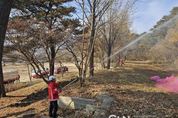 경기헤드뉴스 성미연 기자 | 경기도는 13일 포천시 일동원 기산리 일원에서 포천시, 소방서, 경찰서 등 유관기관이 참여한 산불진화통합훈련을 실시했다. 도는 건조주의보와 강풍특보가 발효된 포천시에 쓰레기소각으로 추정되는 산불이 강한 바람의 영향으로 100ha(1㎢) 이상 대형산불로 확대된 구체적인 상황을 가정했다. 지상에서는 산불진화차를 배치해 산불 초기대응과 대형산불 차단을 위한 방어선 구축 등에 집중했다. 공중에서는 산불임차 헬기 1대와 드론을 활용한 소화탄을 시연해 산불 현장의 공중지원 능력을 높이는 훈련으로 이뤄졌다. 특히 봄철 훈련과는 달리 주민대피 훈련도 함께 진행됐다. 봄철 영남권의 초고속, 초대형 산불로 인한 인명피해를 방지하기 위한 것이다. 이태선 경기도 산림녹지과장은 “초고속‧대형 산불로부터 소중한 도민의 생명과 산림을 보호하기 위해 주민 대피와 산불 초동진화 등 실전 같은 대응 훈련을 했다는데 큰 의미가 있다”며 “가을철 도내 산불 피해가 최소화될 수 있도록 철저하게 준비하겠다”고 말했다. 한편 경기도는 가을철 산불방지대책본부를 지난달 20일부터 약 1