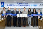 경기헤드뉴스 권준형 기자 | 수원특례시와 (사)국제관광인포럼(TITF)이 ‘글로벌 관광도시 수원’을 만들어 가기 위해 협력한다. 수원시와 (사)국제관광인포럼은 2일 시청 상황실에서 업무협약을 체결하고, ‘제5회 세계관광산업콘퍼런스 개최(6월 5일~6일)’와 ‘2026~2027 수원 방문의 해’의 성공적인 추진을 위해 협력하기로 했다. 협약식에는 이재준 수원특례시장과 국제관광인포럼 김정배 회장, 신연성 부회장, 금기형 사무총장, 신중목 후원회장, 연정아 이사 등이 참석했다. 양 기관은 협약에 따라 ‘제5회 세계관광산업콘퍼런스 공동 개최·운영’, ‘수원시 관광자원 홍보·국제 관광시장 확대 등을 협력하기로 했다. 수원시는 이번 협약을 계기로 국제 관광 네트워크를 확대하고, 수원의 관광자원과 도시 경쟁력을 세계에 알려 ‘1500만 관광객 시대’를 열 계획이다. (사)국제관광인포럼은 2013년 문화체육관광부 인가를 받아 설립된 관광 분야 전문 단체다. 국내·외 관광 전문인 간 교류 협력을 바탕으로 세계 관광산업 발전과 지속가능관광 육성을 지원하고 있다. 김정배 국제관광인포럼 회장