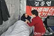 경기헤드뉴스 성미연 기자 | 경기도의회 경제노동위원회 남경순 의원(국민의힘, 수원1)은 4일, '민생예산 복원'을 촉구하며 10일째 단식 농성을 이어가고 있는 백현종 대표의원(국민의힘, 구리1)을 찾아 깊은 위로와 안타까움을 전했다. 남 의원은 "단식 4일차에 찾아뵈었을 때도 가슴이 아팠지만, 불과 엿새 만에 백 대표님의 건강 상태가 눈에 띄게 쇠약해지신 것을 보니 마음이 무너진다"며 힘없이 누워있는 백 대표의 손을 잡고 말을 잇지 못했다. 남 의원은 "도민의 삶을 지켜내겠다는 일념 하나로 이 혹독한 고통을 감내하고 계신다"고 운을 떼며 "찬 바람이 부는 이 겨울, 동료 의원의 뼈를 깎는 희생과 절박한 외침이 그저 강 건너 불 보듯 외면당하고 있는 이 현실이 너무나도 야속하고 분통이 터진다"고 말했다. 이어 "이것은 단순한 정치적 다툼이 아니라, 도민들의 최소한의 생존권이 달린 민생 예산 문제"임을 거듭 강조하며 도민의 지지를 호소했다. 남 의원은 백 대표가 단식이라는 극한의 투쟁을 이어가고 있음에도 불구하고 경기도정의 태도 변화가 없음을 강하게 비판했다. 그는 "백 대표님의 단식 10일째는 경기도정의 불통