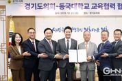 경기헤드뉴스 성미연 기자 | 경기도의회는 23일 오전 의장 접견실에서 동국대학교와 교육협력 및 학술교류를 위한 업무협약(MOU)을 체결했다. 이날 협약식에는 김진경 의장(더민주, 시흥3)과 고준호 의원(국민의힘·파주1), 김완규 의원(국민의힘·고양12), 이병숙 의원(더민주·수원12), 박호순 의정국장이 참석했다. 동국대학교에서는 윤재웅 총장, 김용현 교무부총장, 김승용 대학원장, 유한림 BMC(바이오메디캠퍼스) 행정처장 등이 함께 자리해 협약의 의의를 더했다. 양 기관은 이번 협약을 계기로 ▲의정 발전을 위한 정보 교류 ▲전문 인재 양성을 위한 교육·연구 지원 ▲도의원 및 의회 직원 대상 대학원 장학금 지원 등 의정 활동 역량 강화를 위한 체계적인 교육 협력에 나서기로 했다. 윤재웅 총장은 “대학의 교육·연구 역량을 공유함으로써 경기도 발전에 기여할 수 있게 되어 뜻깊다”며 “경기도의회와의 지속적인 협력을 통해 실효성 있는 교육 지원을 이어갈 수 있도록 최선을 다하겠다”라고 말했다. 김진경 의장은 “의회에 대한 도민의 기대는 점점 더 복잡해지고 다양화되고 있는 만큼 의회 구성원 모