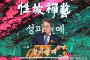 경기헤드뉴스 성미연 기자 | 경기도는 10일 경기도박물관 개관 30주년을 맞아 조계종 최고 지도자 성파 스님의 예술세계를 담은 ‘성파선예전: 성파 스님의 예술세계’ 전시 및 개막식을 개최했다. 성파(性坡)는 조계종 종정인 성파 스님의 법호이며 선예(禪藝)는 선(禪) 수행의 한 방식으로 하는 모든 예술 활동을 뜻하는 말이다. 경기도박물관이 문화유산을 재조명하기 위해 마련한 이번 전시는 성파 스님의 2025년 신작인 옻칠 회화를 중심으로, 스님이 추구해 온 수행과 예술의 경계를 넘어서는 철학을 엿볼 수 있는 작품들을 선보인다. 개막식에는 300여 명의 종교·예술계 인사들이 참석했다. 김동연 지사는 이 자리에서 “2024년 예술의전당 종정예하 특별전에서 축사를 하면서 경기도에서도 작품을 접할 수 있었으면 좋겠다고 공개적으로 부탁드렸는데 흔쾌히 수락해 주셔서 1년여 준비기간을 거쳐 특별전을 하게 됐다”며 “정말 기쁘게 생각하고 1,420만 경기도민을 대표해서 진심으로 감사 말씀을 드린다. 많은 분들이 종정예하의 작품을 보셨으면 좋겠다”고 말했다. 그러면서 “종정예하께서 거울에 때가 끼면 사물이 지저분하