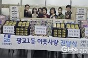 경기헤드뉴스 권준형 기자 | 영통구 광교1동은 지난 2월 11일, 설 명절을 앞두고 관내 단체와 기관의 따뜻한 나눔이 이어지는 가운데 ‘설 명절 이웃나눔 전달식’을 개최했다고 밝혔다. 광교1동에 따르면, 이번 전달식에는 동남용역이 후원한 햄 40세트와 시립광교동어린이집에서 정성껏 준비한 생필품 꾸러미 40박스가 전달됐다. 또한 광교1동 지역사회보장협의체에서 마련한 후원금과 광교1동 공동모금회를 통해 준비된 떡국떡, 전, 나물, 과일 등 명절 음식도 함께 전달돼 뜻깊은 의미를 더했다. 특히 이번 나눔은 기업과 보육기관, 지역 복지단체가 한마음으로 참여해 설 명절을 앞두고 소외되기 쉬운 이웃들에게 따뜻한 정을 전하며 지역사회에 훈훈한 분위기를 조성했다. 광교1동은 이날 전달된 성금과 물품을 저소득 가정과 취약계층, 홀몸 어르신 등 도움이 필요한 이웃들에게 전달해 따뜻하고 풍성한 설 명절을 보낼 수 있도록 지원할 예정이다. 송숙영 광교1동장은 “설 명절을 맞아 어려운 이웃을 위해 소중한 정성을 모아주신 모든 분들께 깊은 감사의 말씀을 드린다”며, “전달받은 성금과 물품은 꼭 필요한 이웃들에게 정성껏