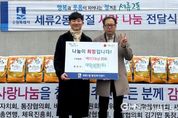 경기헤드뉴스 권준형 기자 | 지난 11일, 수원시 권선구 세류2동은 설 명절을 맞이하여 사랑 나눔 전달식을 개최했다. 이날 마련된 후원 물품은 취약계층 약 379 가구에 직접 전달될 예정으로 지역사회에 사랑이 전해지는 명절이 될 것으로 기대된다. 이번 전달식에는 세류2동 주민자치회, 통장협의회, 새마을부녀회, 새마을문고, 바르게살기위원회, 자유총연맹, 체육진흥회, 방위협의회, 지역사회보장협의체 등 9개 단체의 단체장과 ㈜대일실업, ㈜광신이 참여했다. 이와 함께 MG세화새마을금고, ㈜에코월드, 영광광고기획 등 지역 내 여러 기관과 개인 후원자의 사랑 나눔도 더해져 행사에 의미를 더했다. 변영호 세류2동장은 “어려운 시기에 지역사회 관심으로 사랑 나눔에 참여해 주신 단체(기관)에 감사드리며, 앞으로도 유관 기관과 적극 협력으로 행복과 웃음이 피어나는 정겨운 세류2동을 만들기 위해 최선을 다하겠다”라고 말했다.