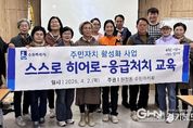 경기헤드뉴스 권준형 기자 | 수원시 영통구 원천동은 지난 2일 원천동 주민자치회가 행정복지센터 소회의실에서 2026년 주민자치회 활성화 사업의 일환으로 응급처치 교육 ‘스스로 히어로’를 실시했다고 밝혔다. 이번 교육은 위급 상황 발생 시 주민자치회 위원들이 침착하고 정확하게 대응할 수 있도록 돕기 위해 마련됐다. 특히 관할 소방서에서 직접 교육을 진행했으며, 이론 중심이 아닌 실습 위주의 체험형 교육으로 운영됐다. 교육 내용은 ▲심폐소생술(CPR) 실습 ▲자동심장충격기(AED) 사용법 ▲응급상황 발생 시 행동요령 등 실제 상황에서 즉시 활용할 수 있는 필수 응급처치 기술들로 구성돼 참여자들의 높은 호응을 얻었다. 윤두원 원천동 주민자치회장은 “응급상황은 예고 없이 찾아오지만, 미리 익힌 대처법 하나가 소중한 생명을 살릴 수 있다고 생각한다”며 “이번 ‘스스로 히어로’ 교육을 통해 주민자치회 위원들이 마을의 안전을 지키는 든든한 이웃이자 모범이 되길 바란다”고 말했다. 김선혁 원천동장은 “앞으로도 주민들이 안심하고 생활할 수 있는 안전한 마을 조성을 위해 지속적으로 노력하겠다”고 말했다. &nbs