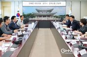 경기헤드뉴스 성미연 기자 | 광주시는 28일 시청 6층 비전홀에서 안태준 국회의원과 현안 논의를 위한 정책소통 간담회를 가졌다. 이날 회의에는 방세환 시장과 안태준 국회의원, 박상영 시의회 운영위원장, 시청 간부 공무원 등 30여명이 참석했으며 광주시 최대현안인 도로·철도망 확충을 비롯해 도시개발사업, 공영 산단 조성 등 자족기능 강화를 위한 투자 사업들과 특교세 지원, 지방채 발행 등 재정 상황 극복을 위한 건의사항들이 심도있게 다뤄졌다. 이번 회의를 통해 현안 해결을 위한 공동 노력은 물론 시 발전을 위한 협력 체계 구축 방안에 대해서도 폭넓게 의견을 교환했다. 방 시장은 “광주시 발전이라는 공동목표 실현을 위해서는 여야가 따로 없으며 앞으로도 이런 정책 소통 자리가 자주 있기를 희망한다”며 “광주시가 직면한 현안들이 원활히 추진될 수 있도록 국회의원의 적극적인 관심과 협조를 당부드린다”고 밝혔다.