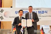 경기헤드뉴스 성미연 기자 | 안산시의회가 독일 아헨특구시의회와 우호협력 MOU를 체결했다. 시의회는 안산시 경제사절단의 일원으로 독일을 방문 중인 송바우나 의장이 독일 아헨특구시의 팀 그뤼테마이어(Tim Grüttemeier) 시장 겸 의장과 함께 현지 시각으로 지난 19일 아헨시청에서 양 의회 간 상호 교류 및 협력 기반 강화를 위한 우호 협력 합의서에 서명했다고 밝혔다. 이날 협약식에는 협약 당사자 외에도 한갑수 시의원과 안산시 이민근 시장 등 안산시 경제사절단을 비롯해 아헨특구시의회의 요흔 에몬즈 크리스천 민주당 의장, 하이너 베리프 사회민주당 부의장 등 독일 관계자들이 참석했다. 양측이 서명한 합의서에는 ▲양 기관의 신뢰와 우의를 바탕으로 한 상호 협력 관계 유지와 ▲경제·문화·교육·체육·예술·환경 등 다양한 분에서의 교류 도모를 통한 공동의 발전 모색 ▲상호 호혜적 정신을 바탕으로 한 실질적·적극적 교류로 상호 번영 및 발전 기여 등 3개 합의 사항이 담겼다. 이번 합의서 체결은 앞서 지난해 6월 아헨특구시 경제사절단이 안산시의회를 방문했을 당시 송바우나 의장이 두 의회의 우호협력 관계 추진을 아헨시 측에 제안하면서 이뤄졌다. 독일 아헨특구시는 지방