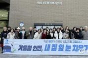경기헤드뉴스 권준형 기자 | 수원시 영통구 망포1동 행정복지센터는 지난 12월 19일 통장, 공무원 등 40여 명이 참여한‘내 집 앞 눈 쓸기 캠페인’을 실시했다. 이번 캠페인은 주민 스스로 내 집 앞 보행로의 눈을 치우는 생활 속 실천 운동으로, 대설 시 제설 공백을 최소화하고 이웃 간 배려 문화를 확산하기 위해 마련됐다. 강설로 인한 보행자 안전사고를 예방하기 위해 이면도로, 경사지점 등 취약한 지역에 제설함을 배치해 주민 스스로 살포하여 결빙을 방지할 것을 홍보했다. 주택가 골목길과 상가 밀집 지역은 제설차 진입이 어려워 주민 참여가 무엇보다 중요한 만큼, 주민, 상인회에 홍보 전단을 나누어 주며 적극적인 홍보와 참여를 독려했다. 특히 10cm 이상 눈이 내리면 신속한 제설을 위해 망포1동 관내를 7개 구역으로 나누고, 단체원들을 거주지 인근으로 배치해 제설 지침을 마련하여 행정복지센터의 요청 시 담당구역 제설에 참여해 줄 것을 당부했다. 김영희 망포1동장은“내 집 앞 눈 쓸기는 작은 실천이지만, 어르신과 어린이의 안전을 지키는 큰 힘이 된다”며 “주민 여러분의 자발적인 참여를 부탁드린다”