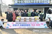 경기헤드뉴스 권준형 기자 | 수원시 영통구는 지난 12일 영통발전연대가 다가오는 설 명절을 맞아 영통구 자율방범대 초소를 방문하여 격려 물품을 전달했다고 밝혔다. 영통구 자율방범대는 각종 범죄·사고가 우려되는 관내 취약 구역을 집중 순찰하며 안전한 지역사회를 조성하기 위해 활동하고 있는 자율적인 자원봉사 단체이다. 이영종 영통발전연대 회장 및 임원들은 영통구 매탄3지대를 비롯한 5개 동 자율방범대 초소를 방문해, 명절을 앞두고도 지역 치안 강화를 위해 힘쓰고 있는 대원들의 노고를 격려했다. 이영종 영통발전연대 회장은 “바쁜 와중에도 늦은 밤까지 지역 안전을 위해 기꺼이 헌신하시는 대원 여러분의 노고에 진심으로 존경과 감사를 표한다”며 “여러분의 헌신으로 영통구가 범죄 없는 안심 마을로 자리 잡을 수 있었던 만큼, 앞으로도 주민들이 평온한 일상을 누릴 수 있도록 든든한 파수꾼이 되어주시길 부탁드린다”고 말했다. 장수석 영통구청장은 “지역 공동체의 안전을 위해 자발적으로 봉사에 참여해 주시는 자율방범대원 여러분께 깊이 감사드린다. 앞으로도 자율방범대와 함께 소통하며 영통구 발전을 위해 최선을 다하