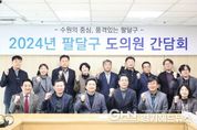 경기헤드뉴스 성미연 기자 | 수원시 영통구는 지난 2일 주요업무 및 현안사항을 논의하기 위한 경기도의회 영통구 지역 도의원들과의 간담회를 개최했다. 이 날 간담회에서는 2024년 주요업무와 현안사업 추진상황을 도의원들과 공유하고 구정발전을 위한 방안을 심도있게 논의했다. 도의원들은 이번 간담회를 통해 구정 발전과 주민 불편해소를 위해 현장행정을 이어가는 영통구 전 직원에게 감사의 말을 전하고 “지역 주민들의 목소리를 더욱 집중적으로 듣고 현안사업의 원활한 추진을 위해 적극 협력하겠다”고 참석 소감을 전했다. 김용덕 영통구청장은 “바쁜 의정활동에도 불구하고 참석해 주신 의원님들께 감사드린다. 의원님들께서 주신 의견을 적극 반영하고 앞으로도 긴밀한 협력과 소통으로 구정 현안사업 운영에 만전을 기하겠다”고 말했다.