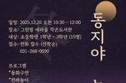 경기헤드뉴스 권준형 기자 | 수원시 장안구 정자3동 그린빌새마을문고는 동지를 맞아 오는 20일 전통문화 등 다양한 프로그램을 체험할 수 있는 ‘동지야 놀자’ 행사를 개최한다고 밝혔다. 이번 행사는 오는 20일 오전 10시 30분부터 12시까지 도서관에서 진행되며, △동화구연 △작은음악회 △전래놀이 △팥죽나눔 등 다양한 프로그램이 마련됐다. 박혜경 그린빌새마을문고회장은 “이번 행사를 통해 우리 고유의 세시풍속을 자연스럽게 익히고 따뜻한 겨울 정을 느낄 수 있길 바란다”며 “앞으로도 지역 주민과 함께하는 작은도서관이 될 수 있도록 노력하겠다”고 말했다.