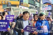 경기헤드뉴스 성미연 기자 | 경기도의회 유호준 의원(남양주 다산·양정)이 3월 13일 수원역 문화광장에서 열린 '3.8세계여성의날 기념, 2026 경기여성대회'에 참석해 “경기도의 성평등 정책이 대한민국 성평등 정책의 방향을 이끌고 있다”라며 경기도의 성평등을 위해 함께하는 활동가들에게 감사의 뜻을 전했다. '빛의 혁명을 완수하자'를 주제로 진행된 이번 경기여성대회의 참석자들은 차별금지법 제정, 성평등 추진체계 강화, 여성의 사회 안전망 강화 등을 우리 사회 과제로 제시하며 성평등 민주주의 실현을 통한 빛의 혁명 완수를 요구했다. 여성청년, 이주여성, 장애여성 등 다양한 여성들의 발언과 공연을 통해 여전히 차별과 혐오 속에 놓여 있는 여성들의 이야기를 들은 유호준 의원은 “성평등의 실현 없이는 민주주의의 완성도 기대하기 어렵다”고 밝힌 후, “지연된 여성·성평등 의제를 경기도와 경기도의회의 중심 과제로 세우겠다”라며 성평등 정치인으로 의정활동의 목표를 제시했다. 유호준 의원은 발언을 통해 최근 발표된 정부의 ‘공공생리대 그냥 드림’ 시범 사업과 관련해 “정부가 공공기관에 공공생리대를 비치하는 사업을 시작하는