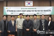 경기헤드뉴스 성미연 기자 | 경기도의회 의회운영연구회(회장: 양우식 위원장)는 지난 13일(금) 운영위원회 회의실에서 '경기도의회 광고·홍보의 효율적 집행을 위한 제도개선 연구 연구용역' 착수보고회를 개최했다. 이번 연구용역은 현재 경기도의회의 광고·홍보 집행과 관련하여 매체 선정 기준이나 광고 배분 기준이 명확하지 않은 문제점을 분석하고, 경기도의회의 의정홍보 및 도민소통을 위한 광고·홍보 집행원칙과 기준마련 등 관련 정책을 수립하고 입법화하는 것이 목적이다. 이번 연구는 한세대학교 산학협력단에서 연구를 수행하며 ▲경기도의회 의정활동 광고·홍보 집행과정과 효과성 분석 ▲지역 언론 육성과 상생적 관계 구축방안 모색 ▲경기도의회 광고 시행 가이드라인 마련 등을 주요 내용으로 한다. 양우식 위원장은 인사말을 통해 “해마다 의정홍보비 등으로 168억원의 예산이 집행되는데 광고·홍보 집행과 관련하여 매체 선정기준, 광고 배분 기준이 명확하지 않은 것에 대한 문제점이 매년 행정사무감사에서 지적됐다”며 “연구용역을 통해 투명하고 합리적인 기준과 제도적 개선방향이 마련되기를 기대한다”고 밝혔다. 이어 양 위