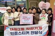 경기헤드뉴스 임수연 기자 | 오산시 대원2동 행정복지센터는 지역사회 나눔 문화 확산을 위해 ‘찐찐’을 대원2동 착한가게 12호점으로 지정하고, 지난 18일 착한가게 인증스티커 전달식을 진행했다고 밝혔다. 착한가게는 매월 일정 금액이나 물품을 기부하며 지역 내 어려운 이웃을 위한 나눔 활동에 동참하는 업소로, 기부된 후원금품은 대원2동 지역사회보장협의체를 통해 복지사각지대 발굴과 취약계층 지원 등 다양한 지역복지 사업에 활용된다. 이번에 착한가게로 지정된 ‘찐찐’은 떡케이크와 기름세트 등을 후원하며 지역사회 나눔 활동에 참여해 왔으며, 따뜻한 나눔 문화 확산에 기여하고 있다. 손효숙 ‘찐찐’ 대표는 “작은 정성이지만 지역의 어려운 이웃들에게 도움이 되길 바라는 마음으로 나눔에 동참하게 됐다”며 “앞으로도 지역사회와 함께하는 따뜻한 가게가 되도록 노력하겠다”고 말했다. 김소영 대원2동장은 “지역 상인들의 자발적인 나눔이 모여 더욱 따뜻한 대원2동을 만들어가고 있다”며 “나눔에 동참해 주신 ‘찐찐’ 대표님께 감사드린다”고 전했다. 이어 “앞으로도 지역사회와 협력해 복지사각지대 해소와 나눔 문화 확산을