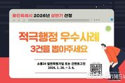 경기헤드뉴스 성미연 기자 | 용인특례시는 26일부터 다음달 6일까지 시 홈페이지 시민참여 게시판과 소통24에서 전 국민을 대상으로 투표를 진행한다고 밝혔다. 시는 매년 상하반기 창의력과 전문성을 발휘해 불합리한 규제를 개선하고, 시의 발전을 이끈 정책을 적극행정 우수사례로 선정하고 있다. 올해 상반기 적극행정 사례 투표 대상은 ▲외팔보(캔틸레버) 인도교 상하반기 정기안전점검 제도화 ▲구성적환장 개선 사업 ▲세종포천고속도로 동용인IC(가칭) 연결 허가 조기 승인 ▲환경기초시설에 연구개발(R&D)‧민관협치로 부가 수익 창출 ▲반도체 산업용지 확대 공급 ▲맞춤형 학교 제설지도 제작 ▲테마파크 다회용 컵 도입 ▲지하시설물 통합관리 협의체 ▲용인시 국민신문고 개설 ▲공익사업으로 토지 수용 시 부수토지에 대한 양도세 비과세 배율 유지 ▲층수 대신 높이 기준으로 소방관 진입창 설치 기준 개선 ▲방치된 향토문화유적 ‘세심정’ 복원 ▲위기 청년 원스톱 맞춤형 솔루션 연계 ▲방치된 독정교 하부 공간을 시민 공간으로 조성 등 15건이다. 투표 기간은 26일부터 2월 6일까지다. 투표는 누구나 참여할 수 있다. &n