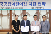 경기헤드뉴스 성미연 기자 | 평택시는 지난 6일 평택시청 대외협력실에서 하나금융그룹과 국공립어린이집 지원 공모사업 선정에 따른 업무협약을 체결했다. 이날 협약식에는 정장선 시장과 하나은행 남부영업본부 이동훈 대표가 참석했다. 이번 공모사업은 저출산 문제해결과 여성의 경제참여율 제고를 위해 하나금융그룹에서 지자체와 손을 잡고 국공립어린이집 건립을 추진하는 것으로, 협약에 따라 평택시는 하나금융그룹에서 9억9백만원의 사업비를 지원받게 된다. 본 사업비로 보육환경이 열악한 시립영아전담지산어린이집을 송탄근린공원 내에 연면적 570㎡, 2층 규모로 이전 신축할 계획이며, 2023년 개원을 목표로 하고 있다. 한편, 시는 2년에 걸쳐 같은 공모사업에 선정되어 하나금융그룹과 함께 국공립어린이집을 확충하여 아동친화도시로 한걸음 더 발전하는 계기가 되었다. 정장선 시장은 “국공립어린이집 확충으로 자녀양육의 부담을 줄이고 일과 생활이 조화로운 환경 조성에 한 걸음 내딛게 되어 기쁘다”며, “앞으로도 민관협력을 통한 시비절감은 물론 아이 키우기 좋은 도시를 만들어 가도록 최선을 다하겠다”고 말했다.
