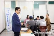 경기헤드뉴스 성미연 기자 | 김동연 경기도지사가 4월 29일 ‘경기도 인공지능(AI) 창작단’ 시범사업 참여 발달장애인 교육 현장인 오산 하늘소리협동조합을 방문해 발달장애인들과 함께 창작활동에 참여하며 교육생들을 격려했다. 김동연 경기도지사는 “(오늘 이 자리에는) 도에서 지금 역점을 두고 있는 발달장애인, 인공지능(AI), 문화예술이 다 모여 있다. 경기도는 도청사 내 발달장애인 그림을 전시하고, 도청 행사 때 발달장애인공연단을 초청하는 등 발달장애인을 포함한 장애인들을 위한 여러 기회를 생각하고 있다”라며 “경기도가 전국에서 장애인들에게 더불어 살 기회를 만들어 드리고 차별이 없도록 가장 선도적으로 하려고 하니까 여러분들이 누릴 수 있는 권리를 마음껏 누리고 경기도와 함께 힘차게 성장하고 발전했으면 좋겠다”라고 말했다. ‘경기도 인공지능(AI) 창작단’이란 도가 추진 중인 ‘경기지피티(GPT) 추진 계획(로드맵)’에 포함된 사업이다. 경기도는 생성형 인공지능으로 주목받고 있는 지피티(GPT)를 도정에 접목하기 위해 전담 기구 조직, 인공지능 콜센터, 발달장애인을 대상으로 한 예술활동 교육 등의 내용을 담은 ‘경기지피티(GPT) 추진 계획