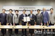 경기헤드뉴스 성미연 기자 | 4조 3천억 원 규모의 해외투자 유치와 청년기회 확대를 위해 미국을 방문 중인 김동연 경기도지사가 미시간대학교에 이어 뉴욕주립대버팔로와 경기청년에게 해외연수 기회를 제공하는 경기청년사다리프로그램을 함께 추진하기로 합의했다. 이에 따라 올해만 80명 이상의 경기도 청년이 미시간 대학과 뉴욕주립대버팔로 등 미국 유명 대학 2곳에서 해외연수를 할 수 있게 됐다. 김동연 경기도지사는 현지 시각 12일 오전 미국 뉴욕에 위치한 뉴욕주립대(SUNY) 글로벌센터에서 사티쉬 K. 트리파티(Satish K. Tripathi) 뉴욕주립대버팔로 총장과 이런 내용을 담은 ‘경기도 – 뉴욕주립대버팔로 간 경기청년사다리프로그램 협약서’에 서명했다. 특히 이날 협약식에는 클린턴 정부 당시 연방 교육부 장관을 역임했으며 현재 뉴욕주립대 소속 64개 대학을 모두 관리하는 존 킹(John B. King, Jr.) 시스템 총장이 깜짝 방문해 행사의 의미를 더했다. 김 지사와 킹 총장은 담소를 나누며 경기청년사다리프로그램에 대한 기대와 중요성에 대해 의견을 나눴다. 경기청년사다리프로그램은 경기도 청년을 대상으로 해외연수 프로그램을 지원해 사회적 격차 해소와 다양한
