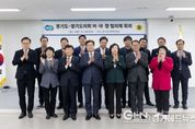 경기헤드뉴스 성미연 기자 | 경기도와 경기도의회 간 민생현안 협의를 위한 소통·협치 기구 ‘여·야·정 협의체(이하 협의체)’가 출범했다. 지난 7월 김동연 지사가 취임 후 첫 확대간부회의에서 여·야·정 협의체 구성 의지를 밝힌 후 4개월여 만에 경기도와 경기도의회가 대타협을 이뤘다. 김동연 경기도지사와 염종현 경기도의회 의장, 더불어민주당 남종섭 대표의원, 국민의힘 곽미숙 대표의원은 25일 경기도의회 대회의실에서 이런 내용을 담은 ‘경기도-경기도의회 여·야·정 협의체 공동협약서’에 공동 서명하며 본격적인 ‘김동연표’ 정책협치, 민생협치의 출발을 알렸다. 염종현 의장은 “오늘의 자리를 가장 기뻐하실 분들은 바로 1,390만 경기도민분들이라고 생각한다. 동수의 의석을 주시며 대립과 갈등을 넘어 대화와 타협의 길로 가라는 준엄한 뜻을 저희가 비로소 받들게 됐기 때문”이라며 “서로 간의 처지와 지향점은 다르지만, 희망의 끈을 놓지 않고 끈질기게 협의해왔기에 가능했다. 김동연식 협치 모델의 출발을 대내외에 공식적으로 알리는 신호탄이 될 것이다”라고 평가했다. 경기도의회 국민의힘 곽미숙 대표의원은 “힘들게 이 자리까지 왔는데 서로 소통하고 협의하고