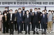 경기헤드뉴스 성미연 기자 | 경기도노사민정협의회 참여 기관들이 민생경제 위기 극복과 실천과제 발굴을 위해 공동 협력하는 한편, 탄소중립 산업전환에 따른 노동·일자리 공정한 전환을 위해 힘을 모으기로 합의했다. 김동연 경기도지사는 29일 경기도청 다목적회의실에서 열린 민선 8기 첫 노사민정협의회 본회의에서 주요 참석자들과 이 같은 내용의 ‘민생경제 위기 극복을 위한 노사민정 공동선언문’을 발표했다. 이 자리에는 김연풍 한국노총 경기지역본부장, 김춘호 경기경영자총협회장, 민길수 중부지방고용노동청장, 박진만 한국산업단지공단 경기지역본부장 등 협의회 위원 20여 명이 함께했다. 특히 도 민생대책특별위원회 문우식 공동 위원장, 노사단체 대표 등이 선언에 동참, 민생 회복 노력에 힘을 실었다. 이번 공동선언에 따라 경기도와 노동계, 경영계는 민생경제 위기 극복을 위한 실천과제를 발굴하고 적극 소통·협력해 나가기로 했다. 구체적으로 ‘노동계’는 신뢰·협력을 토대로 한 노사 파트너십 강화로 노동·민생경제 위기 극복에 동참하고, ‘경영계’는 고용안정, 노사상생과 기업경쟁력 강화를 위한 혁신으로 지역경제 활성화에 적극 노력할 것을 다짐했다. 도는 플랫폼·초단시간 노동자 등 노