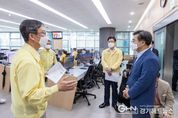 경기헤드뉴스 성미연 기자 | 김동연 경기도지사 당선인이 30일 경기도 전역에 호우경보가 내려지는 등 기상악화가 발생하자 도청 재난상황실을 방문해, 대응 상황을 살펴보고 직원들을 격려했다. 이날 오전 재난상황실을 방문한 김 당선인은 이진찬 경기도 안전관리실장으로부터 호우 대처 및 피해 상황을 보고 받은 후 철저한 대응을 주문했다. 이어 열린민원실을 찾아 도정 관련 민원 대응에 애쓰는 직원들에게 감사의 뜻을 전했다. 한편, 경기도는 이날 오전 6시 10분 경기도 31개 시‧군 전역에 호우경보(3시간 강우량이 90㎜ 이상 또는 12시간 강우량이 180㎜ 이상)가 발령된 것과 관련해, 지난 29일 오후 7시부터 재난안전대책본부 비상 1단계를 가동한 데 이어 30일 오전 5시부터 비상 2단계로 격상했다. 기상청의 30일부터 7월 1일까지 경기도 예상강우량은 50~150㎜(최대 200㎜)다. 이에 도는 인명피해 우려 지역 예찰, 차량·선박 대피, 실시간 상황전파 태세 강화 등의 조치를 취하고 있다.