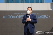 ▲ ‘제100회 어린이날 기념행사’ 모범 어린이 표창 기념사진 경기헤드뉴스 성미연 기자 |남양주시(시장 조광한)가 주최하고 ㈔남양주지역아동센터협의회(회장 조항용)가 주관하는 ‘제100회 어린이날 기념행사’가 5일 금곡동 이석영광장에서 개최됐다. 이번 ‘제100회 어린이날 기념행사’는 지난달 18일 사회적 거리두기가 전면 해제되고 최근 코로나19 확산세가 누그러짐에 따라 2년 넘게 움츠렸던 어린이들이 신나게 활동할 수 있도록 추진됐으며, 약 1만여 명의 시민이 행사에 참여했다. 이날 행사에는 조광한 남양주시장을 비롯해 남양주시의회 이철영 의장, 구리남양주교육지원청 최상익 교육장, 남양주남부경찰서 김종필 서장, 이석영 선생의 후손인 우당이회영선생교육문화재단 이종찬 이사장, 남양주지역아동센터협회 조항용 회장 등이 참석해 자리를 빛냈다. 기념식은 아동 권리 헌장 낭독, 어린이 표창 및 축하 메시지 전달, 아동 100명과 함께하는 어린이날 노래, 기념 식수순으로 진행됐으며, 남양주시립소년소녀합창단의 축하 공연과 태권도, 비눗방울 아트, 포크 댄스, 버스킹 등의 다양한 공연이 펼쳐졌다. ▲ 이석영광장 개장 기념 ‘제100회 어린이날 기념행사’ 기념 식수 조광한 남양주시