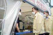 경기헤드뉴스 성미연 기자 | 문재인 대통령은 18일 오전 서울 강남구에 위치한 ‘삼성역 코로나19 임시선별검사소’를 방문, 방역현장을 점검하는 한편 의료진을 격려했다. 문 대통령은 “무더위 속에 코로나19 대응 방역 최일선을 담당하고 있는 의료진들의 어려움을 직접 살펴보기 위해 현장을 찾았다”며, 검사소와 휴게실을 돌아보고 관계자들과 대화를 나누었다. 문 대통령은 “의료진들이 땀범벅이 된 모습을 보면 정말로 안쓰럽고 가슴이 아프다”면서 “아쉬운 점이 있으면 무엇이든지 말해 달라”고 물었다. 관계자가 “더운 날씨가 가장 힘든 부분”이라고 말하자 문 대통령은 “지금도 덥지만 앞으로 기온이 40도 가까이 올라간다고 하니, 폭염대책을 꼼꼼히 챙겨 달라”고 정순균 강남구청장과 양오승 강남구보건소장 등에게 당부했다. 문 대통령은 또 “임시선별검사소에서 검사를 받는 국민들도 더위를 피할 수 있도록 최대한 조치를 취해 달라”면서 임시선별검사소에 설치된 차양막의 상태도 직접 점검 했다. 문 대통령은 이어 임시선별검사소에 얼음조끼 등이 지급되고 있는지 확인한 뒤 직접 ‘목 선풍기’를 목에 착용해보기도 했다. 문 대통령은 컨테이너를 개조해 만든 휴게실을 돌아보며, “천막 임시선