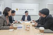경기헤드뉴스 성미연 기자 | 경기도의회 의회운영위원회 이용욱 부위원장(더불어민주당, 파주3)은 29일 파주상담소에서 파주교육지원청 관계자들과 정담회를 열어, 9월 중 최근 3차례에 걸쳐 파주 학부모 및 교육지원청 관계자들과 가진 정담회 결과를 점검했다. 이용욱 부위원장(더불어민주당 파주3)은 현안 보고를 통해 운정중 공사지연(2개월 지연, 공정률 49.6%)에 대해 개학 전 급식실 우선 마감 및 학생 안전 조치 마련을 요구했다. 또한, 남부에 집중되어 있는 특목고 및 과학고 등 으로 인해 발생하는 경기 북부 교육격차 해소를 위해 과학고등학교 파주 유치를 강력히 요구했으며, 시설 부족으로 인해 어려움을 겪고 있는 영도초 다목적실 확보 등 소규모 학교 존폐 위기 대책 마련을 주문했다. 이외에도 직접 현장 점검을 통해 광일중 체육관 천장 분진 리모델링, 금향·문산·와석초 통학로 열선 설치 검토, 동패고 맨홀 돌출 즉각 보수 요청 등 학생 안전 및 시설 노후화 문제에 대해 책임 있는 대응을 강하게 요구했다. 이용욱 부위원장(더불어민주당 파주3)은 파주 지역의 교육 환경 격차 해소와 학생 안전 보장은 의회와 교육당국