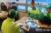 경기헤드뉴스 권준형 기자 | 영통구 광교2동은 지난 3월 16일 관내 식당에서 환경관리원들과 함께 격려 오찬 및 간담회를 개최했다. 이날 오찬에는 광교2동장, 행정민원팀장, 담당 공무원과 환경관리원 5명이 참석했으며, 참석자들은 동의 청결 유지와 환경 개선을 위해 묵묵히 노력해 온 환경관리원들의 헌신에 깊은 감사를 표했다. 또한 간담회를 통해 환경관리원들의 근무 여건 개선, 구역별 애로사항, 근무 효율성 제고를 위한 제안 등이 논의됐으며, 광교2동은 수렴된 의견을 향후 근무 환경 개선과 현장 업무 조정에 적극 반영할 계획이다. 배동선 광교2동 환경관리원 반장은 “추운 날씨에 청소를 하는 것이 쉬운 일은 아니지만 동장님과 시민 여러분이 응원해주시니 힘이 난다. 앞으로도 광교2동 환경관리원이라는 자부심을 갖고 깨끗한 동네를 만들기 위해 노력하겠다”고 말했다. 김금순 광교2동장은 “광교2동이 항상 청결한 이유는 바로 환경관리원분들의 보이지 않는 헌신과 노고 덕분이다. 앞으로도 근무 여건 개선을 위한 지원을 아끼지 않겠다”고 전했다.