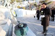 경기헤드뉴스 성미연 기자 | 임태희 경기도교육감이 2일 아침 안양시 현충탑을 찾아 참배하며 2026 병오년(丙午年) 새해 공식 일정을 시작했다. 이날 현충탑 참배는 임태희 교육감을 비롯해 김진수 제1부교육감, 기획조정실장, 행정국장, 협력국장, 홍보기획관, 감사관, 정책기획관, 운영지원과장, 안양과천교육지원청 교육장 등 교육청 주요 직원들과 함께 이뤄졌다. 임 교육감 일행은 현충탑에 헌화, 분향하고 묵념으로 순국선열과 호국영령의 넋을 기렸다. 이어 2026년 경기교육의 힘찬 출발을 경기교육가족 모두와 함께 펼칠 것을 다짐했다. 한편 임 교육감은 2023년 새해 아침 의정부시 현충탑을 시작으로 2024년에는 성남시 현충탑을, 2025년에는 양주시 현충탑을 각각 참배하며 공식 일정을 시작해 왔다.