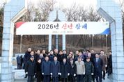 경기헤드뉴스 성미연 기자 | 김진경 경기도의회 의장(더민주, 시흥3)이 2일 ‘2026년 병오년(丙午年)’ 새해를 맞아 현충탑을 참배했다. 김 의장은 이날 오전 10시 시흥시 논곡동에 위치한 현충탑에서 묵념과 헌화·분향을 하며 순국선열 및 호국영령을 기렸다. 방명록에는 ‘거룩한 헌신을 받들어 경기도와 시흥의 눈부신 발전으로 보답하겠습니다’라는 메시지를 남겼다. 이날 참배에는 안광률 교육기획위원장, 장대석 의원, 이동현 의원, 김종배 의원 등 도의원과 함께 광복회, 대한상이군경회, 재향군인회 등 60여명이 함께 했다. 김 의장은 “새해를 맞아 순국선열들의 숭고한 희생을 다시 한번 기리며 경기도민의 더나은 삶을 위해 더욱 열심히 노력하겠다는 각오를 다졌다”라며 “오로지 도민만 바라보며 더 큰 책임과 각오로 나아가겠다”고 밝혔다.