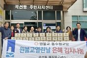 경기헤드뉴스 권준형 기자 | 원불교 동수원교당은 지난 22일 수원시 권선구 곡선동 행정복지센터에서 봄맞이 ‘은혜김치 나눔’ 전달 행사를 개최하고, 정성껏 담근 김치 30박스를 곡선동에 전달했다. 이번 행사는 지역 내 홀몸 어르신, 차상위계층, 저소득 가정 등 취약계층에게 따뜻한 정을 전하고, 봄철을 맞아 이웃 간 나눔의 의미를 되새기고자 마련됐다. 이날 원불교 봉공회원들은 이른 아침부터 정성껏 김치를 담갔으며, 이날 담근 김치 30박스는 홀몸 어르신과 복지 사각지대에 놓인 취약계층 가구에 전달됐다. 김미현 곡선동장은 “매년 지역의 소외된 이웃들을 위해 따뜻한 나눔을 실천해 주시는 원불교 동수원교당에 깊이 감사드린다”며, “앞으로도 민관이 긴밀히 협력해 소외된 이웃이 없는 따뜻한 곡선동 조성에 최선을 다하겠다”고 말했다.