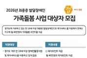 경기헤드뉴스 성미연 기자 | 경기도가 2026년 최중증 발달장애인 가족돌봄 사업 대상자 145가구를 12월 2일까지 모집한다. 최중증 발달장애인이란 도전적 행동이 심하고 일상생활에 제약을 지닌 통합돌봄이 필요한 발달장애인이다. 경기도는 돌봄이 필요한 모든 도민들을 대상으로 누구나, 언제나, 어디나 빈틈없는 돌봄을 제공하는 360도 돌봄사업을 하고 있다. 최중증 발달장애인 가족돌봄 사업은 이 가운데 ‘어디나 돌봄’ 사업의 하나로 진행한다. 2024년 4월 처음 가족돌봄 사업을 시행한 이래 매달 210가구에 월 40만 원씩 돌봄포인트를 제공해 생필품 구입부터 여가활동 지원까지 다양한 부분에서 사용하여 장애인 당사자와 가족의 생활안정에 기여하고 있다. 2026년 최중증 발달장애인 가족돌봄 사업의 지원 대상은 경기도에서 거주하는 복지관, 직업재활서비스 등 복지서비스 미이용으로 돌봄사각지대에 놓인 만 18세 이상 발달장애인이다. 선정 시 월 40만 원 가족돌봄포인트를 1년간 지원하고 지속적인 모니터링으로 복지서비스와 대상자를 연계하는 서비스를 제공한다. 2026년 모집인원은 145명으로 전년과 다르게 모