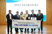경기헤드뉴스 권준형 기자 | 수원특례시 농업기술센터가 ‘2025년 경기도 농촌진흥사업 평가’에서 우수 기관으로 선정돼 경기도지사 표창을 받았다. 시상은 26일 열린 시군농업기술센터소장 업무협의회 중 진행됐다. 경기도는 20개 시군 농업기술센터를 대상으로 2025년 농촌진흥사업 추진 실적을 ▲지도정책 ▲기술보급 ▲농촌자원 ▲농촌진흥사업 활성화 등 11개 분야 33개 지표를 기준으로 평가했다. 수원시 농업기술센터는 농업교육과 도시농업을 체계적으로 운영하고, 농업인 맞춤형 기술 지원을 강화한 점에서 높은 평가를 받았다. 또 ▲신규농업인 양성 교육 운영 ▲시민농장·과수공원 등 도시농업 활성화 ▲농업인 단체 육성 ▲신기술 보급 확대 등 다양한 사업을 추진하며 농업인의 편익과 소득 증가에 이바지한 점도 좋은 평가를 받았다. 수원시 관계자는 “이번 수상은 농업인의 삶의 질 향상과 지역 농업 경쟁력 강화를 위한 노력이 인정받은 결과”라며 “앞으로도 변화하는 농업 환경에 대응할 수 있도록 맞춤형 기술 지원과 교육을 지속해서 추진하겠다”고 말했다.