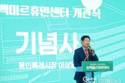 경기헤드뉴스 성미연 기자 | 용인특례시는 2일 오후 기흥구 동백동 지역 주민들을 위한 ‘동백미르휴먼센터’ 개관식을 개최했다. 이곳에는 수영장 등 생활체육 시설, 청소년 문화활동 시설, 어르신 복지 시설, 장애인 돌봄 시설, 평생학습 시설 등이 갖춰졌다. 이상일 시장은 개관식에서 “2008년 부지 매입 후 시설 건립까지 18년이나 걸렸는데, 오랜 세월을 기다려 주신 시민들께 감사 인사를 드리면서 축하의 뜻도 전한다”고 말했다. 이 시장은 "기다림이 컸던 만큼 동백미르휴먼센터를 잘 짓기 위해 노력했다"며 "이곳은 문화·체육·교육·복지 등이 함께 하는 전 세대 맞춤형 복합시설로 좋은 공간과 설비를 잘 갖추고 있으니 자주 마음껏 이용해 주시기 바란다"고 했다. 이 시장은 "이용하시면서 개선할 것 등에 대한 의견도 말씀해 주시면 적극 검토하겠다"며 "시는 이처럼 훌륭한 시설이 다른 여러 지역에도 건립될 수 있도록 부지와 예산을 확보하는 노력을 기울이겠다"고 했다. 이 시장은 이날 ‘동백미르휴먼센터’가 성공적으로 개관할 수 있도록 기여한 인사들에게 표창장을 수여하고, 입주한 시설 관계자에게 ‘