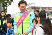 경기헤드뉴스 성미연 기자 | 이상일 용인특례시장은 14일 아침 처인구 고림로에 위치한 고진초등학교 정문 횡단보도에서 어린이들의 안전한 통학환경 조성을 위한 교통지도 봉사활동에 참여하고 학교 주변 통학로를 점검했다. 이상일 시장은 서경란 고진초 교장, 녹색어머니회·학부모회·학생 등 60여명과 함께 등굣길 어린이들이 안전하게 길을 건널 수 있도록 돕고 운전자들에게 ‘어린이보호구역 내 서행’을 당부하는 교통안전 캠페인을 펼쳤다. 이 시장은 통학로 현장을 둘러보며 ▲고림고 유리방음벽 모서리 보호대 설치 ▲고림고~힐스테이트용인고진역 구간 횡단보도 너비 확대 ▲해당 구간 도로의 물고임 등 도로시설물 일제정비 ▲통학로 낙엽제거(보행자 미끄러짐 방지) 등의 추가 건의사항을 꼼꼼히 챙겼다. 이상일 시장은 녹색어머니회와 학부모회 회원들에게 “아이들의 등굣길을 지켜주셔서 감사 드린다”며 “학생들이 마음 놓고 통학할 수 있는 안전한 도시 환경을 만드는 것이 무엇보다 중요한 만큼 시에서도 현장을 잘 살펴 필요한 조치를 신속히 진행하겠다”고 말했다. 이 시장은 10월과 11월에도 용인신촌초, 백현초, 구갈초, 신월초,