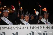 경기헤드뉴스 권민성 기자 | 남양주시는 27일 화도읍 월산교회에서 남양주문화원 주최로 열린 3.1독립만세운동 기념행사가 성황리에 마무리했다고 밝혔다. 이번 행사는 남양주 지역에서 전개된 독립만세운동의 역사적 의미를 되새기고, 지역 독립운동 정신을 계승하기 위해 마련됐다. 행사에는 주광덕 남양주시장을 비롯해 조성대 남양주시의장, 남양주문화원장, 경기북부보훈지청장, 광복회 남양주시지회장, 도·시의원, 독립유공자 후손과 시민 등 300여 명이 참석해 독립 정신을 되새겼다. 행사는 총 3부로 운영됐으며, 1부에서는 기념식과 기념예배가 진행됐다. 시립합창단의 식전공연을 시작으로 기념예배, 주광덕 시장의 경축사와 독립선언서 낭독 등이 이어졌다. 2부에서는 월산교회에서 마석역 광장까지 ‘횃불 대행진’을 진행했다. 풍물패와 군부대의 인도 아래 시민들이 직접 횃불을 들고 행진하며 1919년 당시의 긴박했던 만세 운동 현장을 재현했다. 마지막으로 3부에서는 모든 참석자들이 마석역 광장에서 삼일절 노래 제창과 만세삼창을 외치며 행사의 대미를 장식했다. 주광덕 시장은 “3.1운동의 정신은 과거에 머물지
