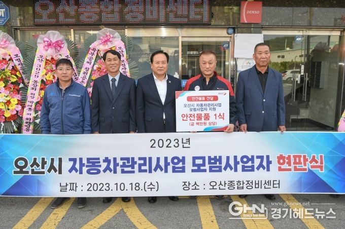 경기헤드뉴스 성미연 기자 | 오산시는 지난 18일 오산종합정비센터와 현대동탄서비스검사소에서 2023년 오산시 자동차관리사업 모범사업자 현판식을 개최했다.