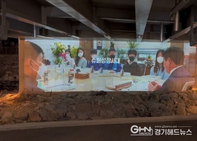 사능천 약대울교에는 경관조명과 영상시스템(교량하부)을 설치해 안전한 보행 환경을 조성했으며, 다양한 영상 콘텐츠를 투사해 수변공간과 조화로운 분위기를 연출했다.