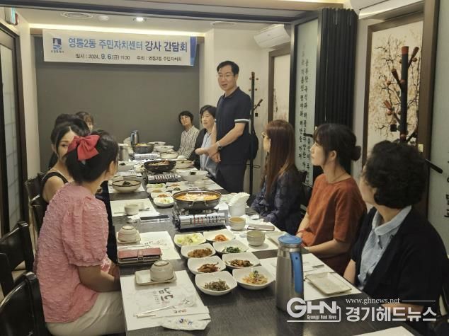 경기헤드뉴스 성미연 기자 | 수원시 영통구 영통2동 주민자치회는 지난 6일 영통2동 주민자치센터 활성화를 위해 관내 식당에서 ‘2024년 주민자치센터 프로그램 강사 간담회’를 개최했다.