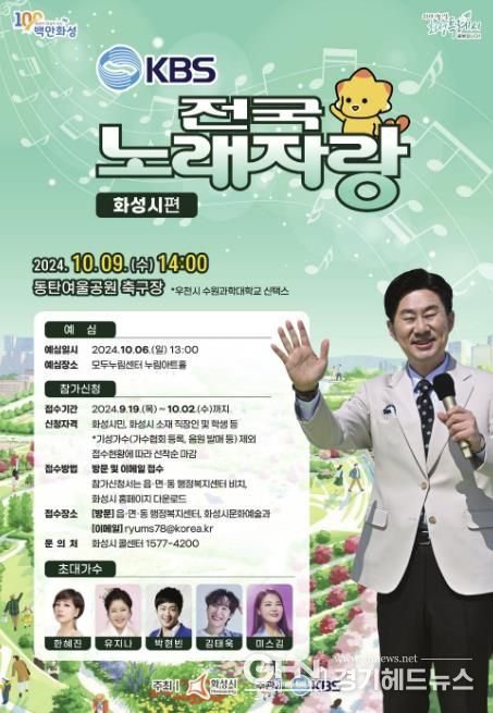 경기헤드뉴스 성미연 기자 | 화성시가 다음달 9일 동탄여울공원에서 ‘KBS 전국노래자랑’ 화성시편을 녹화한다고 19일 밝혔다.