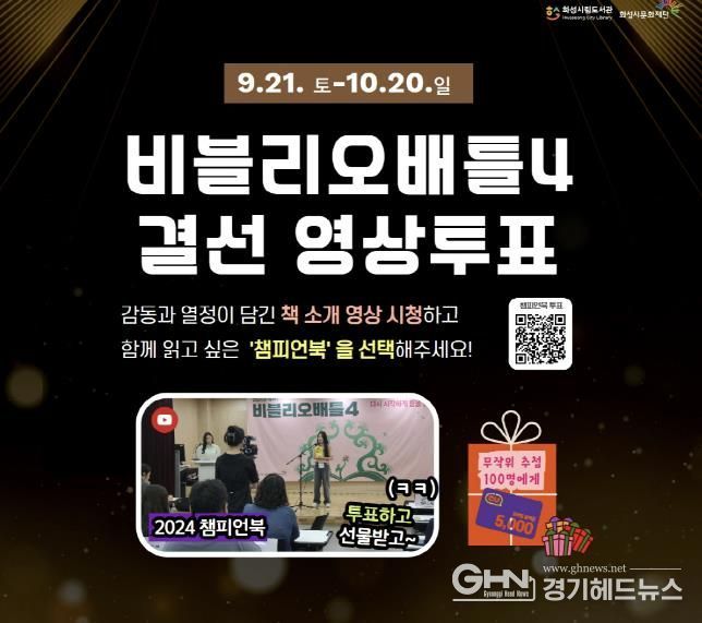 경기헤드뉴스 성미연 기자 | 화성시문화재단 화성시립도서관이 9월 21일부터 10월 20일까지 '제 4회 비블리오 배틀' 결선 영상투표를 실시한다.