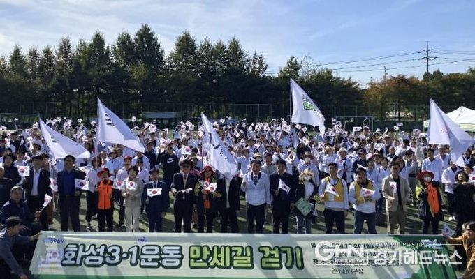 경기헤드뉴스 성미연 기자 | 화성시가 지난 20일 우정읍 쌍봉산 근린공원에서 화성3·1운동만세길 걷기 행사를 성황리에 개최했다.