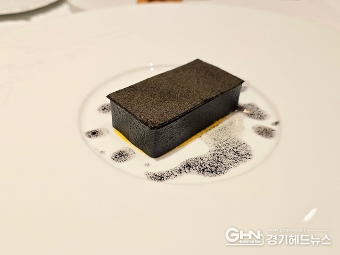 검은 상자는 이곳에서의 또 다른 미식적 모험이다. 오징어 먹물로 물들인 검은 외피는 마치 작고 비밀스러운 상자처럼 닫혀 있고, 그 속에는 땅콩 호박의 부드러운 속과 캐비어가 가득하다. 상자를 부드럽게 깨뜨리는 순간, 흘러나오는 호박의 단맛과 캐비어의 짭조름함이 어우러져 입 안에서 이질적이면서도 완벽한 조화를 이룬다. 이 요리는 눈으로, 손으로, 그리고 입으로 깨닫는 미식적 체험이다. 먹는 것 이상의 감각적 탐험을 제공하는 검은 상자는 라망 시크레의 예술성을 잘 나타내고 있다.