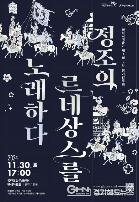 경기헤드뉴스 성미연 기자 | (재)화성시문화재단이 화성시 예술단 제3회 국악 정기연주회 ‘정조의 르네상스를 노래하다’를 개최한다.